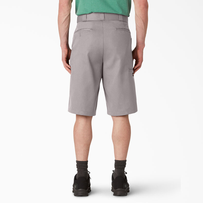 Let the legend live on with Dickies' 13" Loose Fit Multi-Use Pocket Work Shorts that are best sellers for a reason. The longer 13" inseam, extra room in the seat and thigh, and the easy-care fabric, gives you a comfortable solution for the hardest jobs. Plenty of pockets store must-have tools, but the signature heavy-duty belt loops provide enough strength to carry anything else you need in a heavy-load tool belt. The wrinkle-resistant fabric features a stain-release finish with easy care, while the flat front permanent crease keeps you looking professional